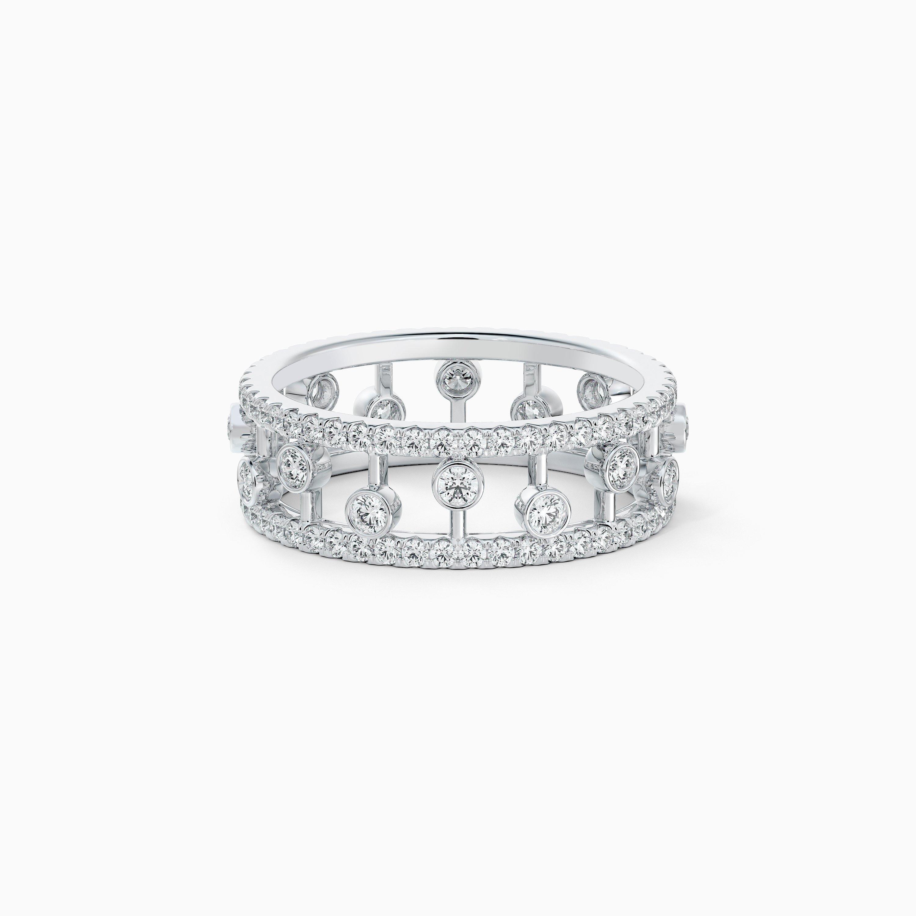 Cette élégante bague en or blanc 18 carats est inspirée du palais d’eau que l’empereur romain Hadrien aurait construit en hommage à sa bien-aimée. D'une largeur de 6mm, elle est composée d'un ensemble de diamants sertis clos suspendus comme des gouttelettes de rosée entre deux délicats anneaux sertis de diamants micropavés. L’or blanc confère à cette pièce une allure contemporaine, tandis que les diamants qui l’ornent reflètent et réfractent la lumière pour une Brillance maximale. Chacun de ces diamants est issu de sources éthiques, conformément au Processus de Kimberley. Leur poids total est d’environ 0,89 carat.